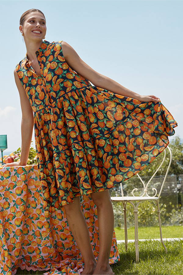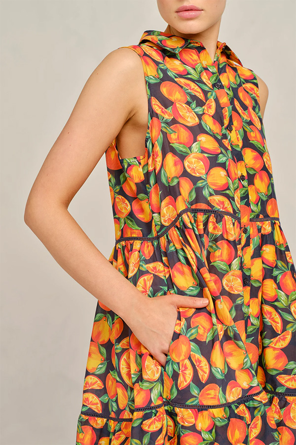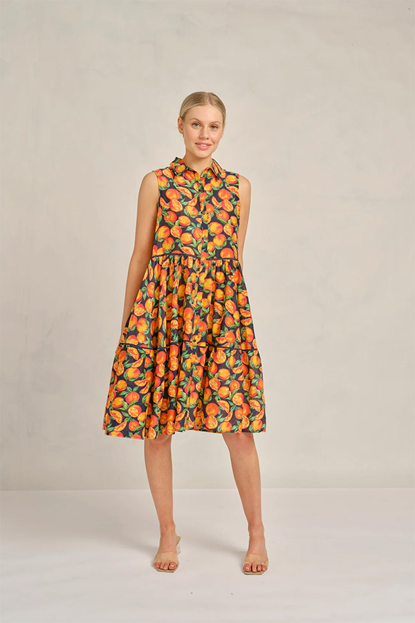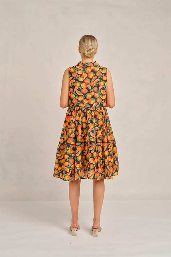 The Alessandra Gigi Dress Navy features a bright citrus print perfect for summer.