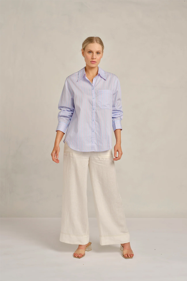 The Alessandra Mix It Up Shirt Gumdrop Bubblegum features a Blue body with pink stripes.