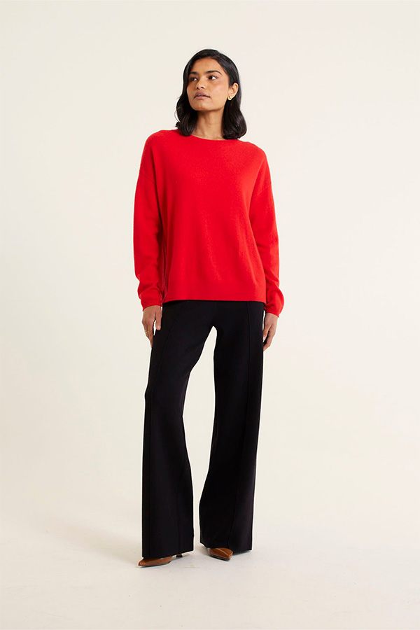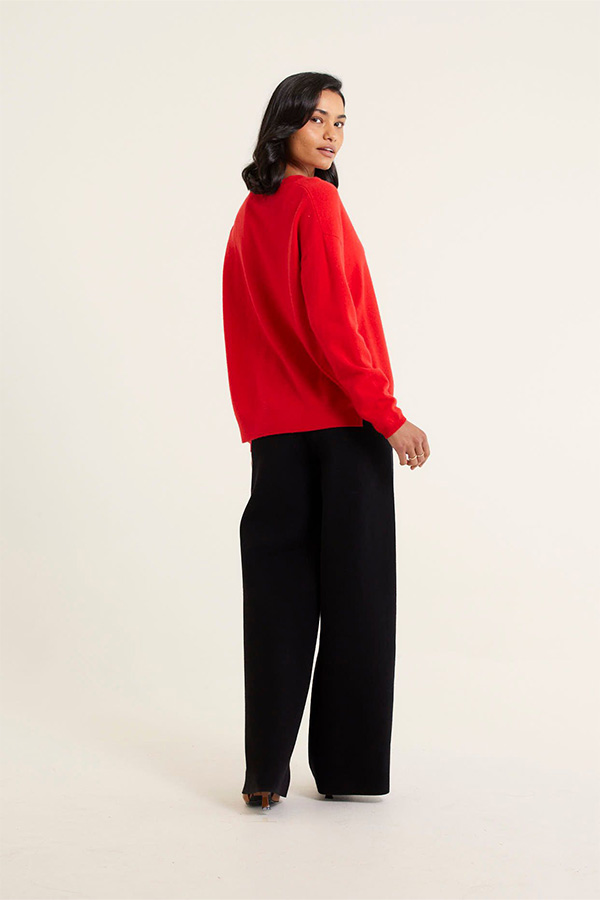 The sweater features a classic red colour, can be dressed up or down with any pant or skirt in your wardrobe.