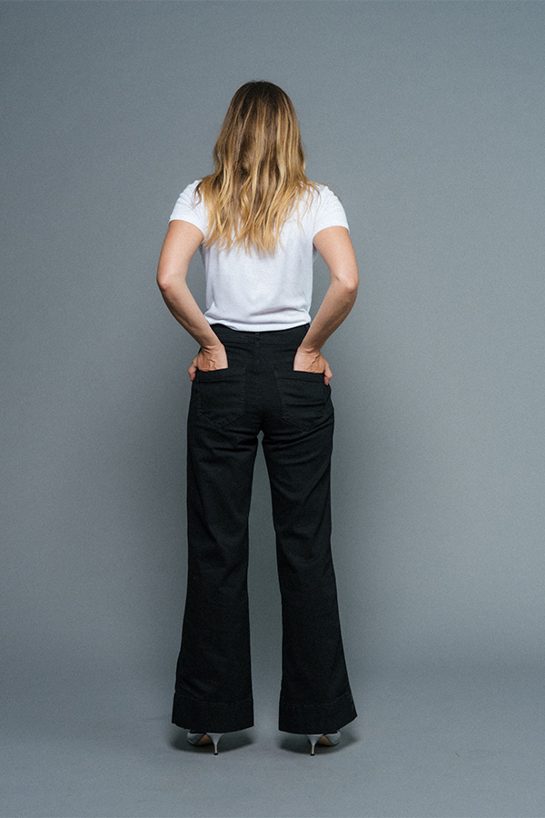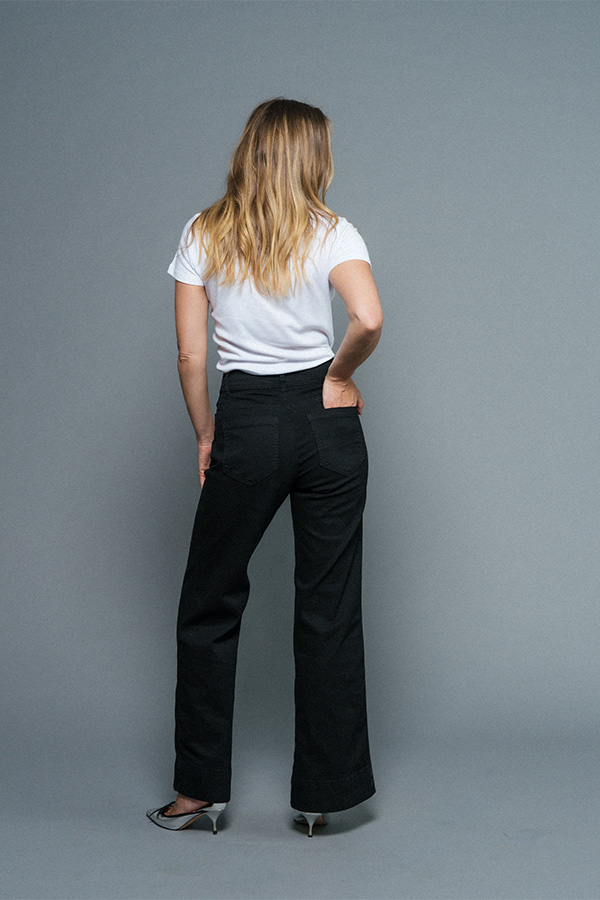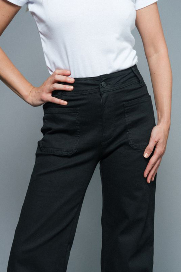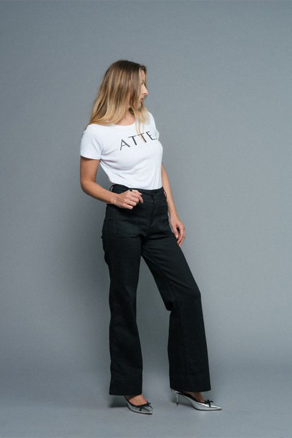 The Atte Helena Noir jeans feature a solid black colour, high rise with a flattering flared leg, front and back pockets that include contrast stitching detail with a wide hem.