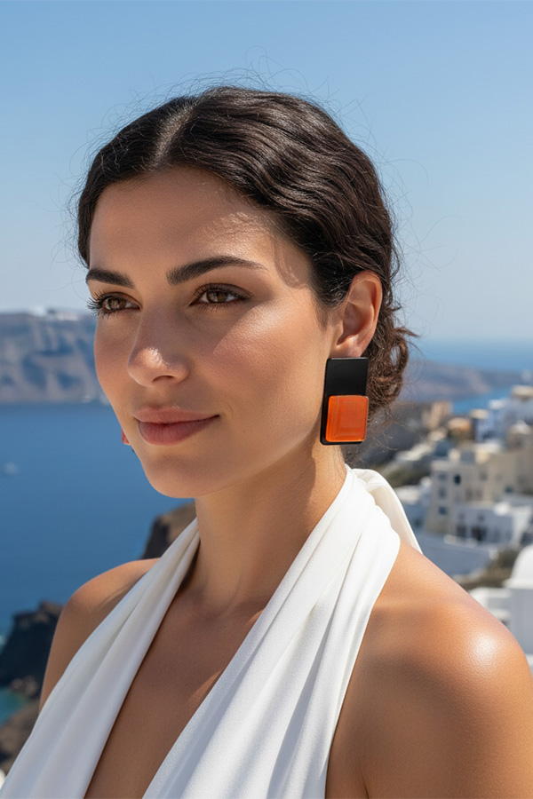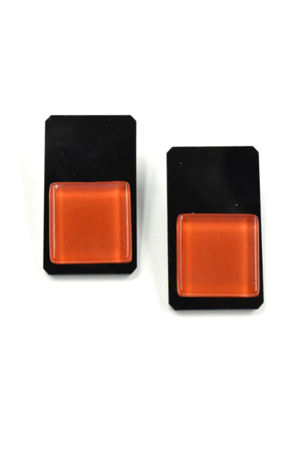 Elevate your style with the Christina Brampti Square Bead Earrings Orange, made from plexiglass.