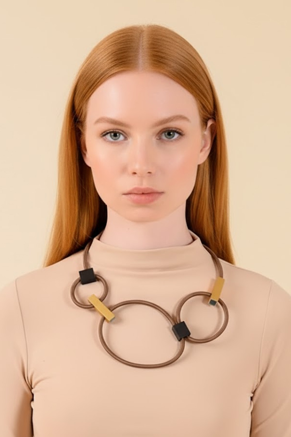 The Christina Brampti Triple Hoop Multi Almum N Tan/Gold uses unusual materials and objects transforming it into something unexpected as a form of personal expression.