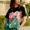 Contrasting embroidered details across the sleeves hem and neckline.