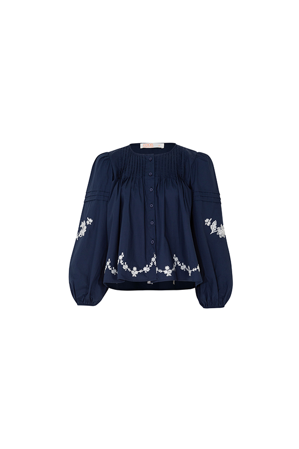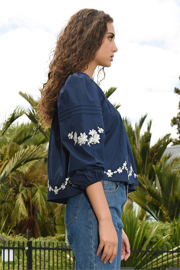 Introduce some sweet embroidery into your looks with the Coop Meadow Dreams Blouse Navy.