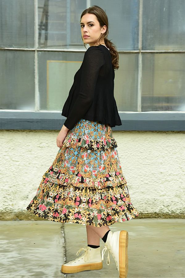 Crafted in the rich hued Work of Heart cotton voile the Coop Skirty Dancing Skirt Black exudes feminine charm thanks to its tiered silhouette lined with flounces.