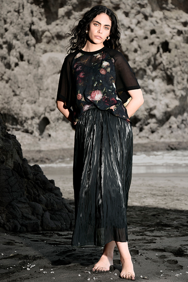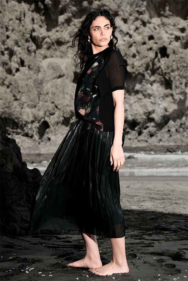 Made in the slinky Charm Surprise fabric the Curate Daring Diva Skirt Blackt is the perfect way to add a feminine touch to your wardrobe while still being practical.