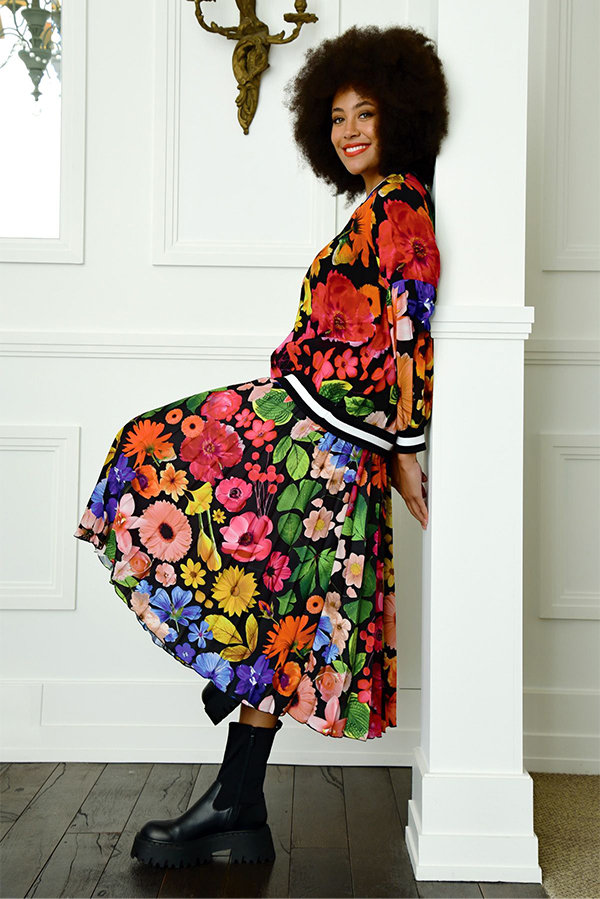 Fall to your feet with the Curate Fall At My Pleat Flower skirt this Autumn.