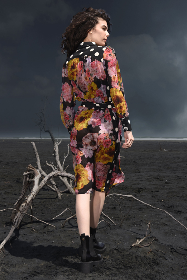 Crafted in the bold Hello Pretty viscose georgette, this dress sports a contrasting polka dot fabric detail throughout the dress, adding a playful element to this feminine classic.