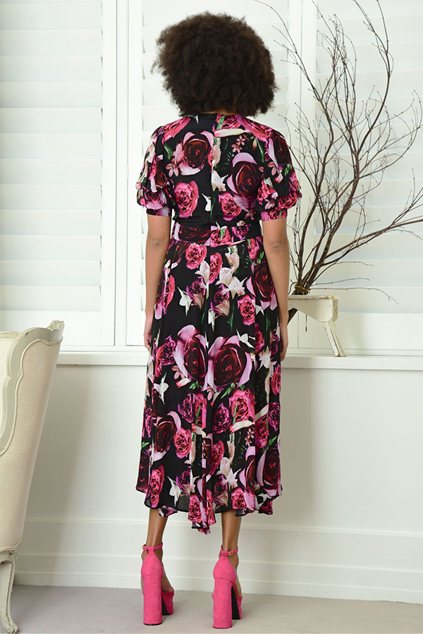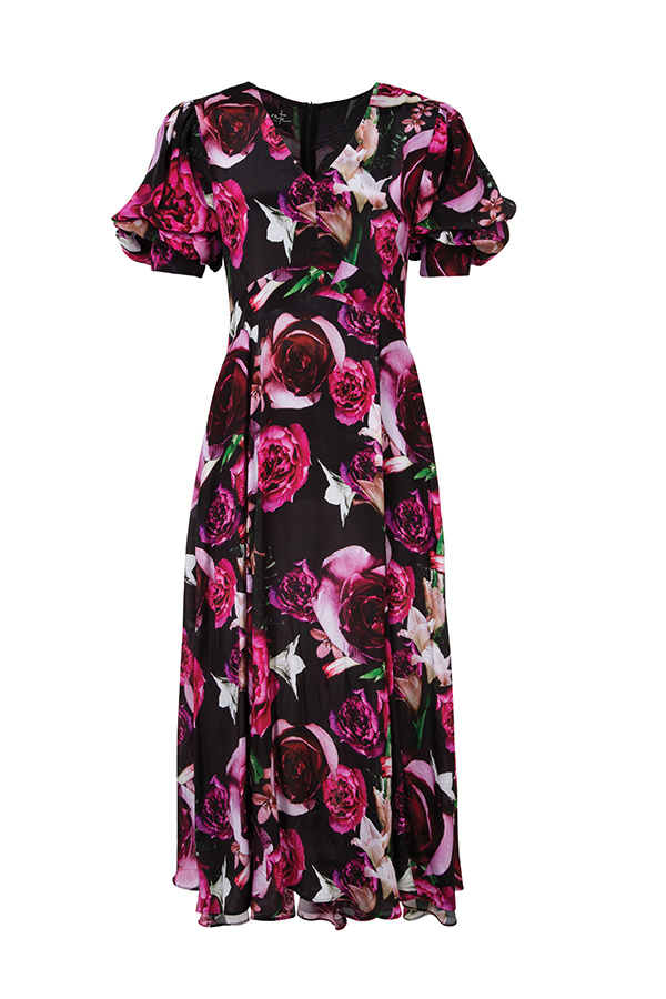 The Curate Treat Yourself Dress Florist feature flutter sleeves and a flare panelled skirt, this dress will flatter anyone and look elegant.