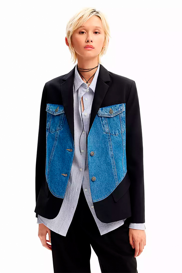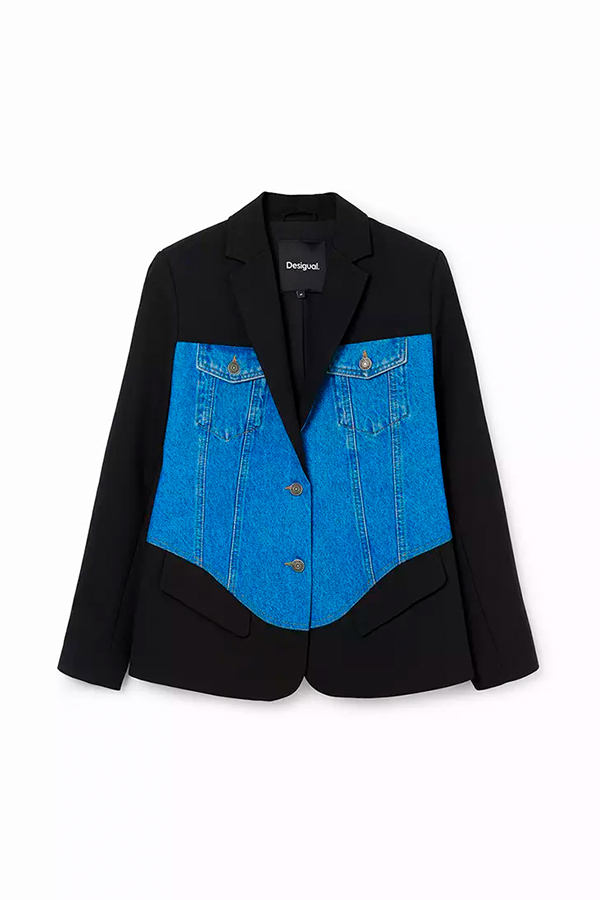 Classic blazer style with denim featured front detail gives the blazer a unique modern twist.