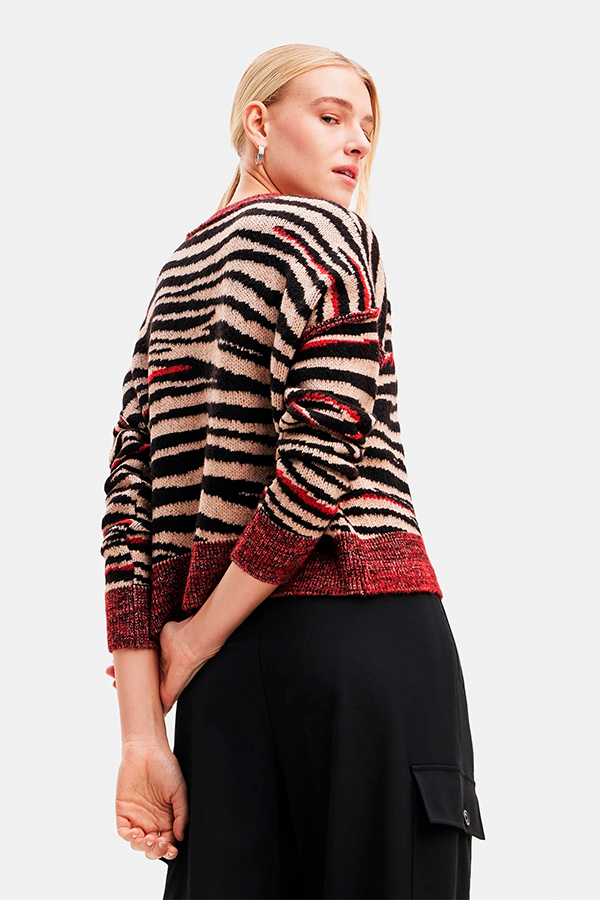 The long sleeve Desigual Pullover Camel has a round neckline, square shape and dropped shoulder.