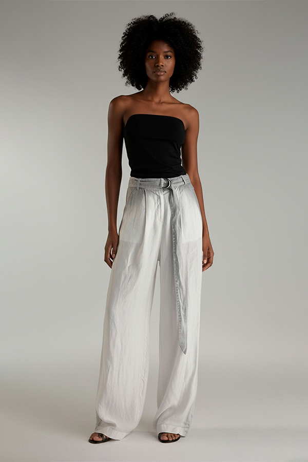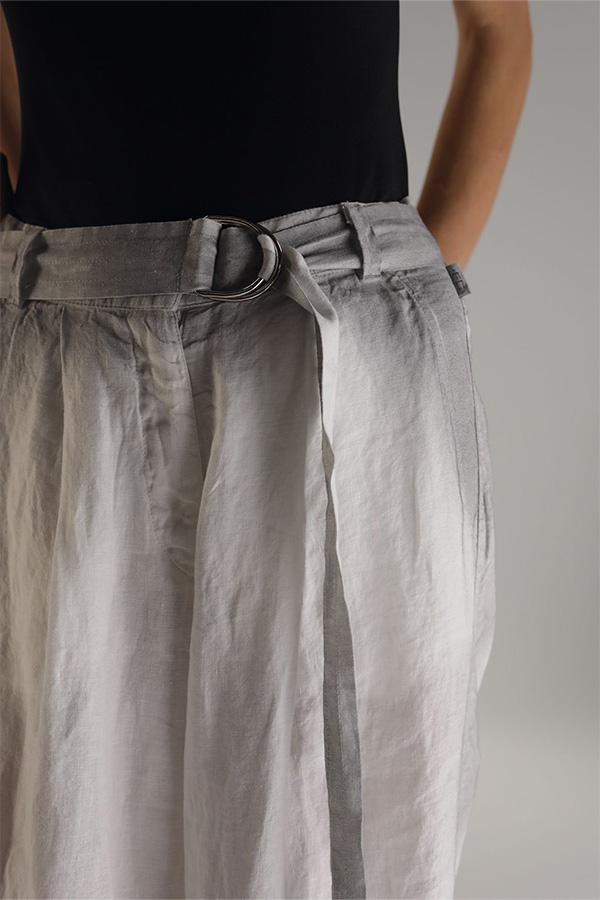 The Elemente Clemente Nacale Pants Undyed/Silver feature a midrise relaxed fit, side pockets, 100% linen and a tie around belt with a silver clasp.
