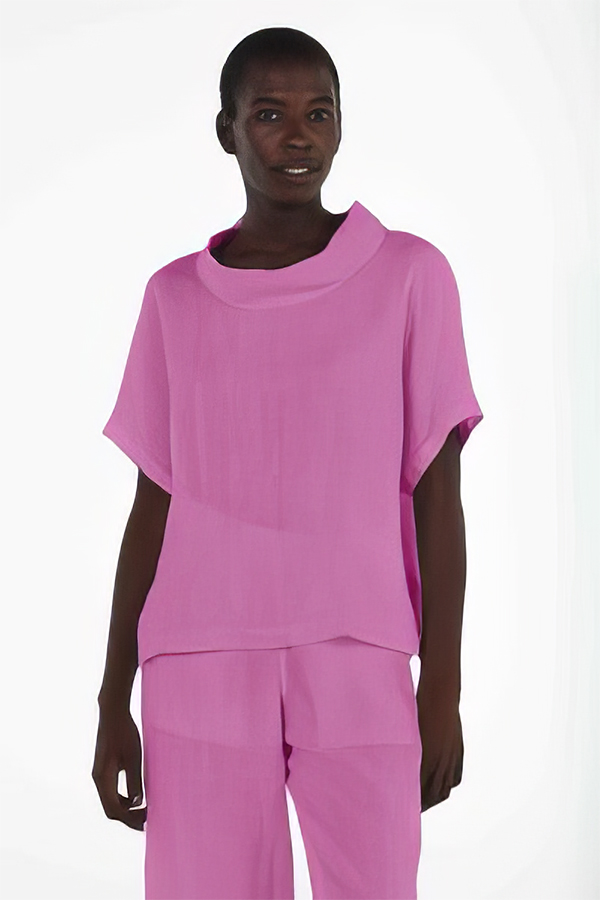 The boxy Elemente Clemente Shirt Diva Orchid has dropped shoulders and stand up collar, made from 100% European linen.