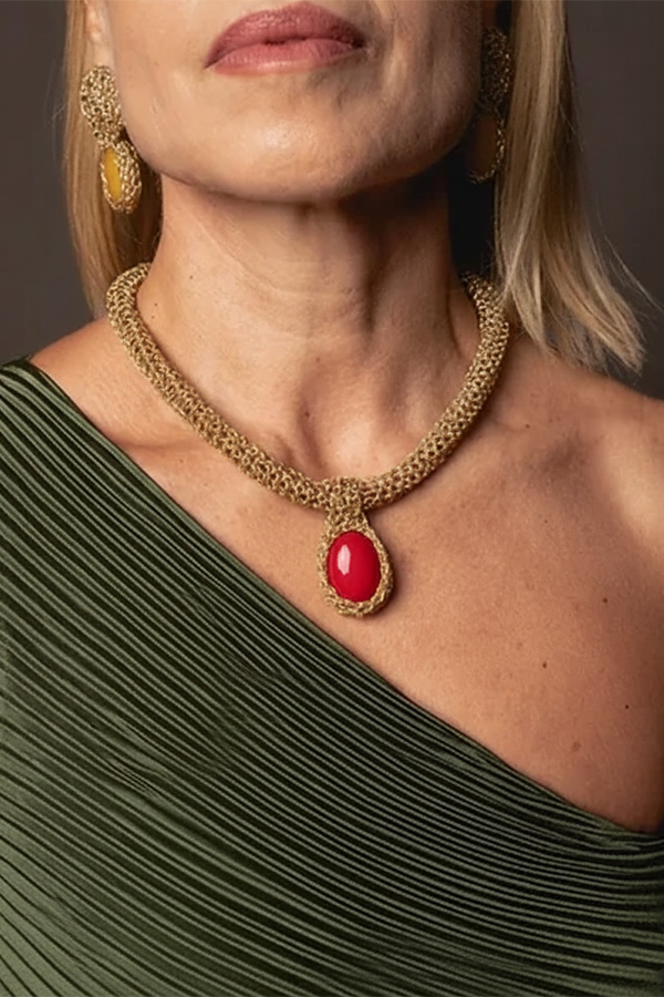 Each unique crochet jewel is crafted entirely by hand with silver plated and gold plated wire.