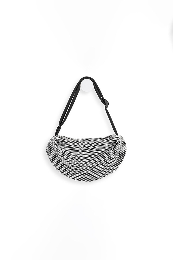 The In.Zu Cocco Bag White Hive Interstellar White brings a modern edge to everyday styling, crafted in a chic black and white textured mesh with a soft, slouchy silhouette.