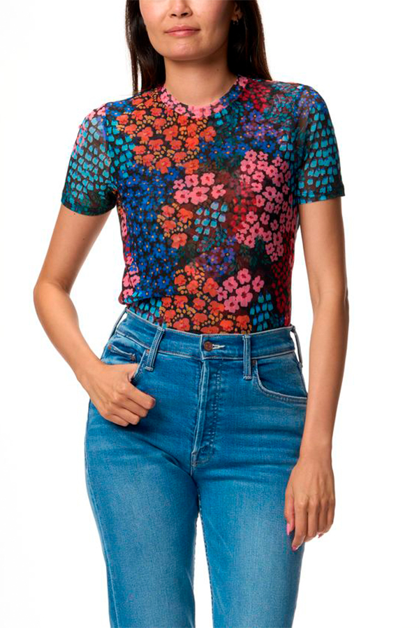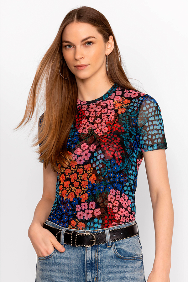 Featuring brilliant blooms in rich saturated color, the Johnny Was Astrid Mesh Tee Multi is crafted from a lightweight, breathable material.