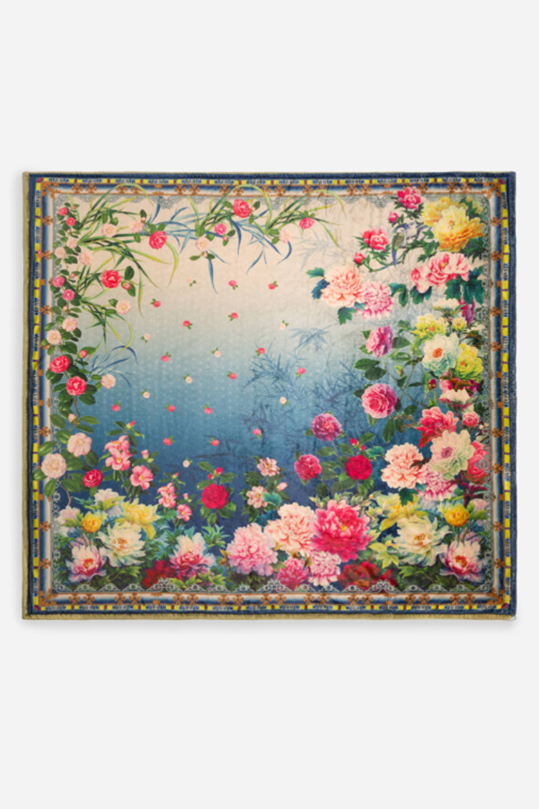 Beautifully embellished, this reversible blanket features a separate bag with a unique tassel tie for easy storage.