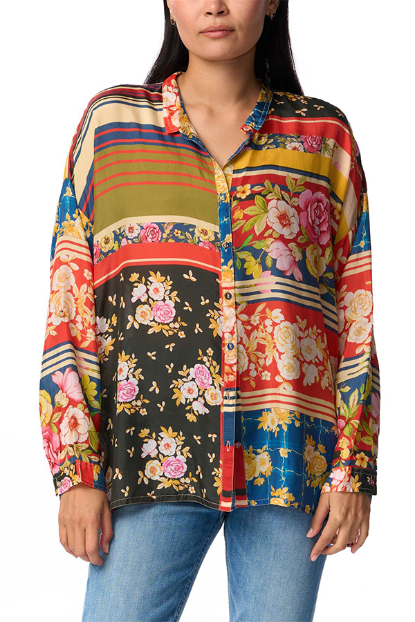 Made from 100% luxurious silk, the Johnny Was Ortega Nicola Button Down Multi offers striking color with a relaxed feel.