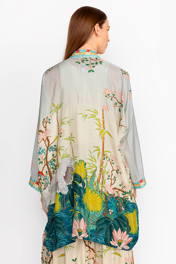 Taking inspiration from a traditional kimono, the Johnny Was Pribasa Shae Kimono Multi features a serene scenic print and unique cut.