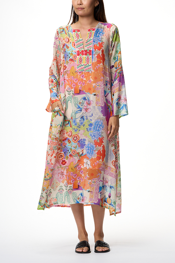 Crafted from a lightweight material, the Johnny Was Robbin Dress Mcdreamer Print is a beautifully flowing accent piece for those warm weather days.