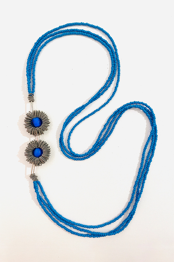 The Jolly Venezia Fiore Glass N Blue features two blue glass beads which are suspended in the multiple strands.