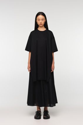 Designed with a black coloured smooth and shiny fabric this skirt is minimalist and classy.