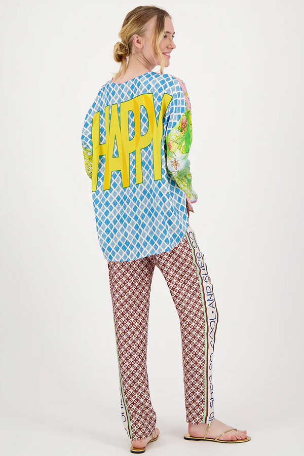 Designed with a unique patterning of floral and geometric prints enhanced with pink, red and blue colours.