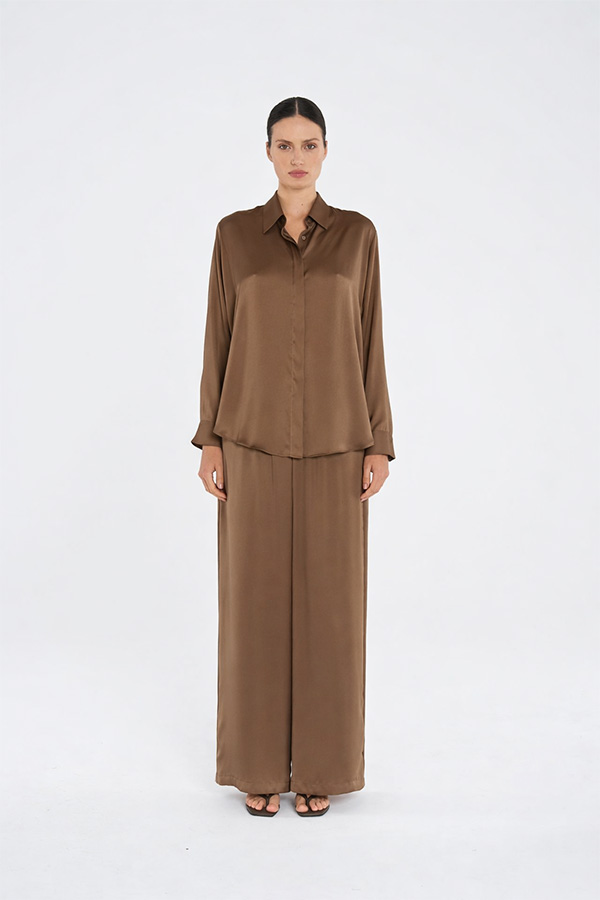 Finished in a rich sepia tone, the effortless drape and clean lines make this a timeless, understated essential.