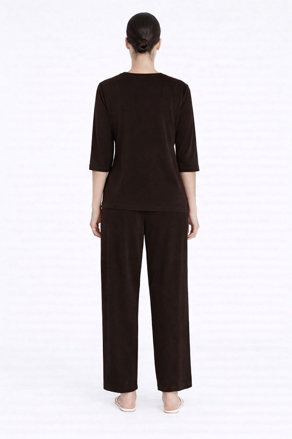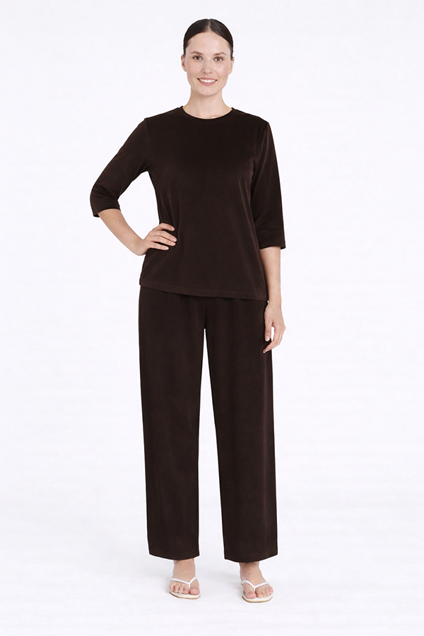 The Mela Purdie Mid SL Top Fudge is a classic crew-neck top with a relaxed fit and three-quarter sleeves, designed for effortless every day wear.