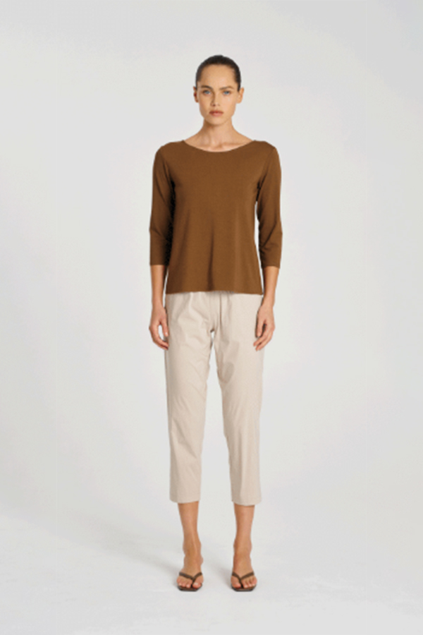 The Mela Purdie Nomad Pant Biscotti features a fitted slightly relaxed leg cut under knee length.