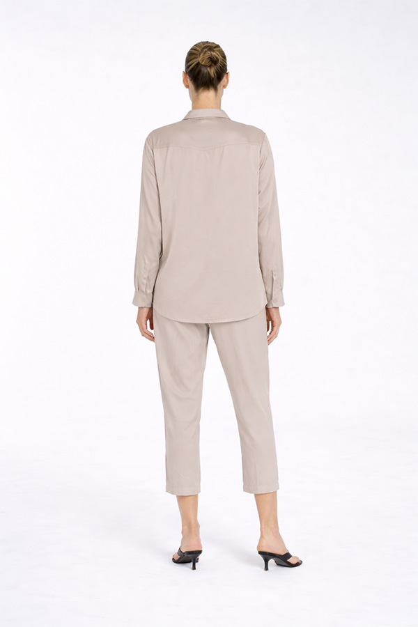 The Mela Purdie Soft Capri Champagne is a relaxed pull-on pant with a gently tapered leg and cropped length for easy, everyday wear.
