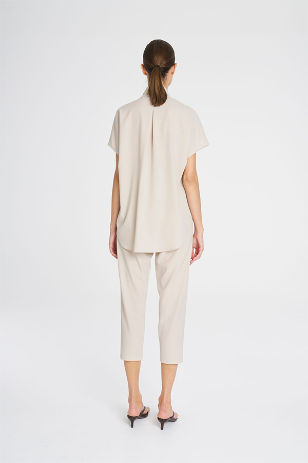 The Mela Purdie Tab Stand Shell Willow is a modern sleeveless blouse designed with a relaxed silhouette and clean, effortless lines.