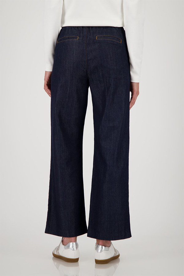 Monari Pants Jeans Culotte 70cm Jeans is a beautifully cut wide-leg denim culotte featuring a relaxed silhouette and comfortable elasticated waistband for effortless everyday wear.