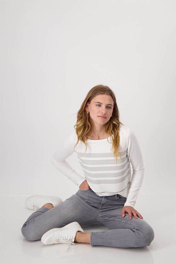 The Monari T-Shirt Off-White features a scoop cut neck and long sleeves.