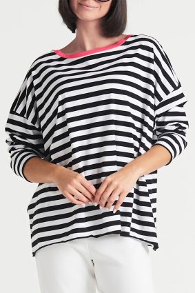 The Planet Border Stripe Boxy T Stripe/Lipstick is designed for ease and the perfect drape.