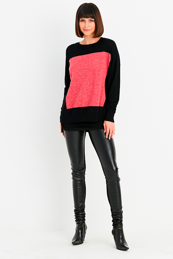 The base of the Planet Squared Sweater Black/Lipstick is made from pima, while the square is soft baby alpaca.