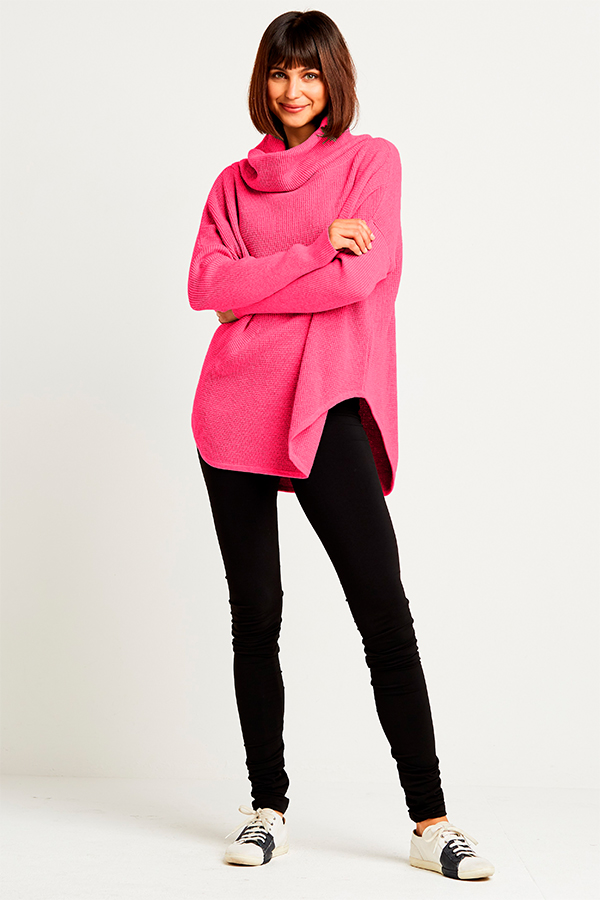 Easy shape features drop shoulders, swingy curved hems, ribbed sleeves and cowl neck drapes beautifully with your body.