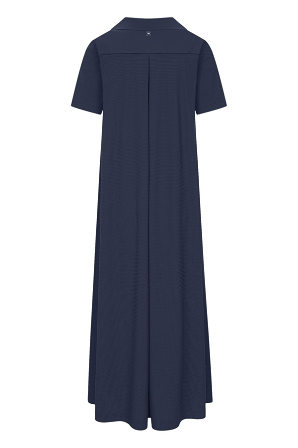 The Raffaello Rossi Josephina Dress Navy features a classic polo collar, V-neckline and shoulder covering short sleeves.