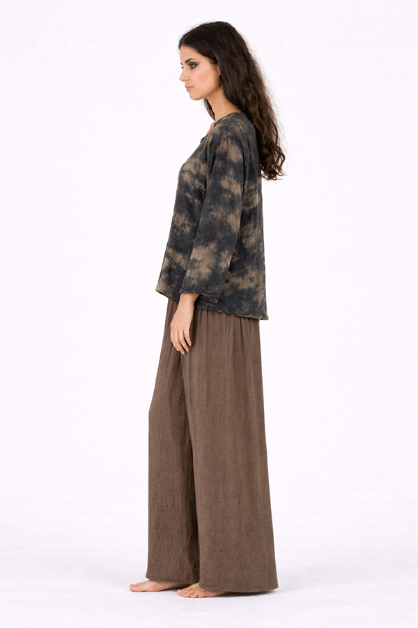 Style it with a plain linen piece or the Sanctamurte Top Wet Sand Print for effortless, artful dressing.