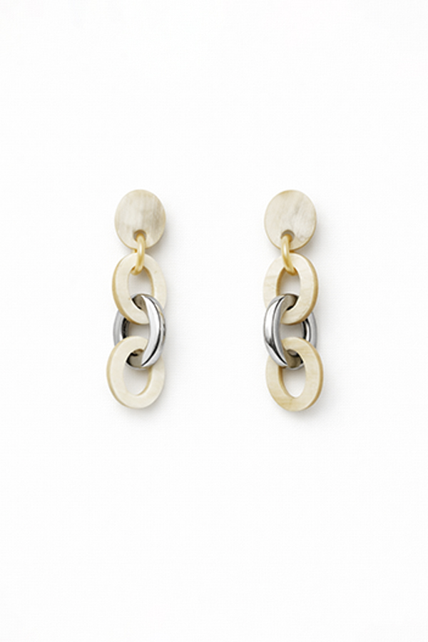 The Soyang Horn Triple Link Drop Earring White/Silver is created from domestic buffalo and zebu horn, a recycled and durable material.
