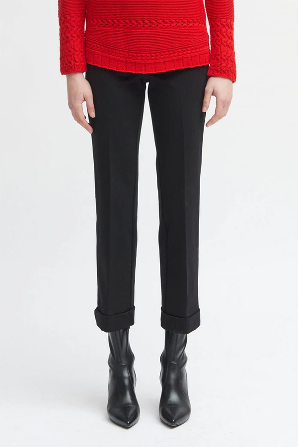 The cropped straight Tinta & Bariloche Perseo24 Pant Black have cuffs, are made from a knit fabric.