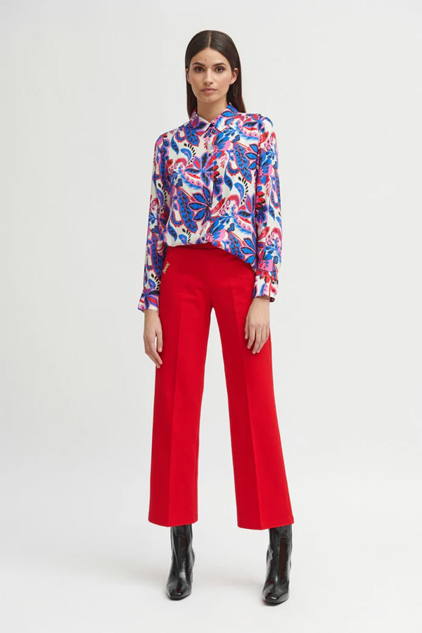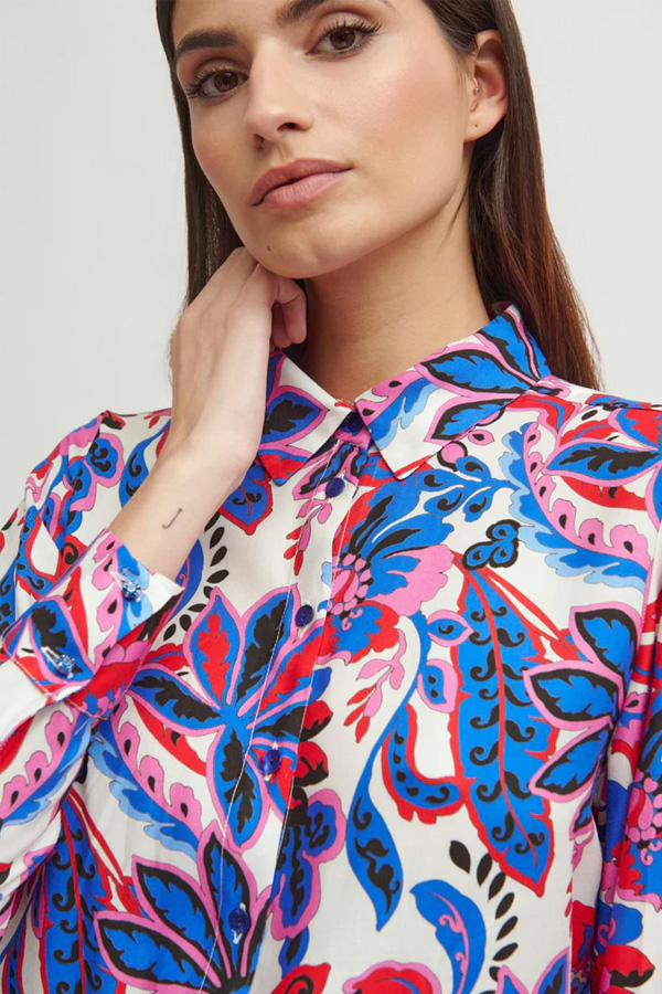 The printed, flowing Tinta & Bariloche Zafra-C Shirt Blue has a shirt collar, front button closure.