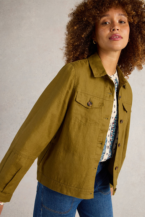 White Stuff Camille Linen Jacket Khaki Grn