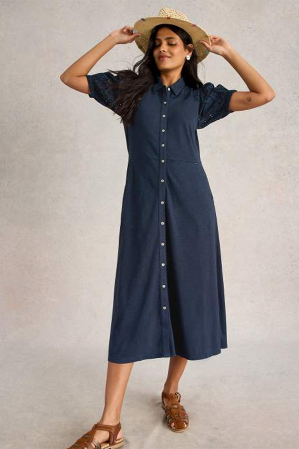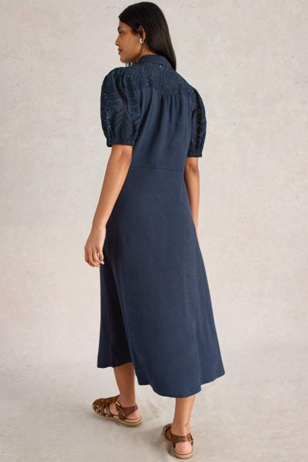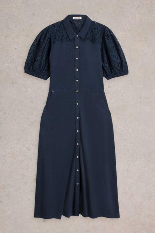 White Stuff Rua Broderie Shirt Dress Dark Navy